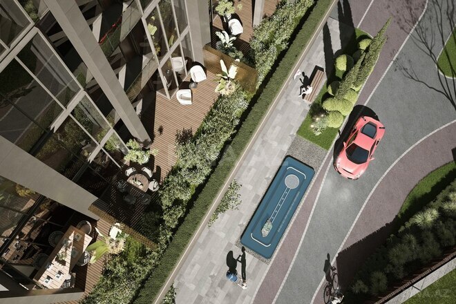 Комплекс включает просторные квартиры и эксклюзивные пентхаусы с собственными бассейнами и видом на Каспийское море. Продуманные планировки, высококачественные материалы и выразительная архитектура с вертикальным озеленением создают атмосферу сдержанной роскоши и уюта. Двор комплекса закрыт от машин и продуман для отдыха и безопасности всех жителей.